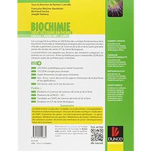 -Biochimie - Tout le cours en fiches - 200 fiches de cours ....Biochimie - Tout le cours en fiches ... 200 fiches de cours, 155 QCM, sujets de synthèse et ressources en ligne. ... QCM pour s’évaluer, sujets de synthèse pour ...