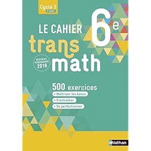 - - Le Cahier Transmath 6e - Joël Malaval - Livres.J'ai acheté plusieurs cahiers de maths pour entrainer ma fille en dehors des exercices donnés par la maitresse, et jusqu'à présent c'est celui que je préfère. Les exercices ne sont pas trop faciles (comme les autres cahiers), il est plus exigeant et les règles sont bien expliqués en haut de chaque page.