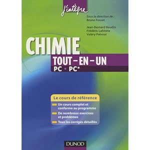 -Livre: Chimie tout-en-un PC-PC* - Le cours de référence ....Cet ouvrage tout-en-un propose aux étudiants de 2e année PC, PC* un cours complet ainsi que de nombreux exercices et problèmes intégralement résolus.