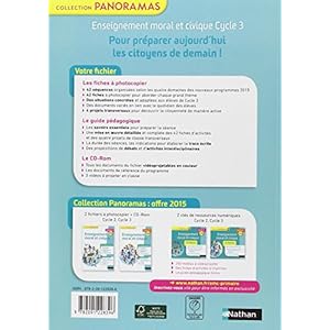 -Enseignement moral et civique Cycle 3 - Fichier à ....Enseignement moral et civique - Fichier en couleur Cycle 3 (288 pages) + CD-Rom : - 42 séquences organisées selon les 4 domaines du nouveau programme. - 42 fiches à photocopier pour aborder chaque grand thème. - Des situations concrètes adaptées aux élèves de cycle 3. - Des documents variés en lien avec le quotidien des élèves.