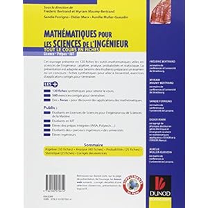 -Mathématiques pour les sciences de l'ingénieur - Tout le ....Cet ouvrage présente en 120 fiches les outils mathématiques utiles en sciences de l’ingénieur : algèbre, analyse, probabilités et statistique. Il s’adresse