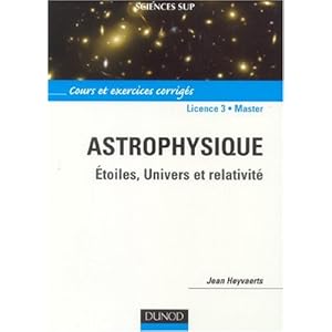 -Astrophysique Licence 3-Master - Achat / Vente livre Jean ....Astrophysique Licence 3-Master - Etoiles, Univers et relativité - Jean Heyvaerts - Date de parution : 07/09/2006 - Dunod - Collection : Sciences Sup - Cet ouvrage s'adresse aux étudiants en Licence 3 et en Master de physique ; il sera également utile aux candidats préparant les concours de l'enseignement secondaire (CAPES et agrégation de physique).