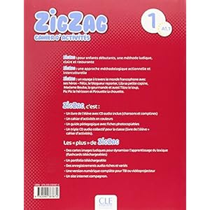 -Zigzag 1 A1 - Cahier d'activités. Hélène Vanthier ....Zigzag, c'est : un livre de l'élève avec CD audio inclus (chansons et comptines), un cahier d'activités en couleurs, un double CD audio pour la classe (livre de l'élève + cahier d'activités). Les "plus" de Zigzag : des cartes images ludiques pour dynamiser l'apprentissage du lexique (flashcards téléchargeables), un portfolio téléchargeable, des enregistrements audio riches et variés, une version numérique complète pour TBI ou vidéoprojecteur, un site internet compagnon.