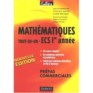-Mathématiques tout-en-un ECS 1e année - Cours ....Découvrez Mathématiques tout-en-un ECS 1e année - Cours et exercices corrigés prépas commerciales le livre de Christian Gautier sur - 3ème libraire ...