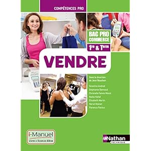 -Vendre - 1re/ Term Bac Pro Commerce - i-Manuel bi-média ....Dans la collection Compétences Pro, l'ouvrage Vendre 1re/ Term Bac Pro Commerce est conforme au référentiel de Bac Pro Commerce. Il propose une approche de l'enseignement par compétences permettant une mise en action des élèves de manière professionnelle. Il est proposé en i-Manuel (livre + licence).