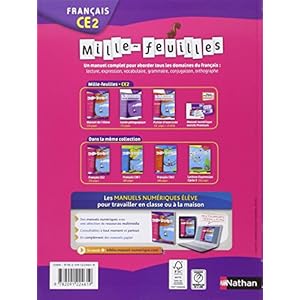 -Mille-feuilles CE2 - Livre de l'élève - 9782091224619 ....Mille-feuilles CE2 est un manuel complet pour aborder tous les domaines d'apprentissage du français : lecture, expression, grammaire, conjugaison, orthographe, vocabulaire. Il est organisé par genre de texte et propose des situations d'apprentissage différenciées.